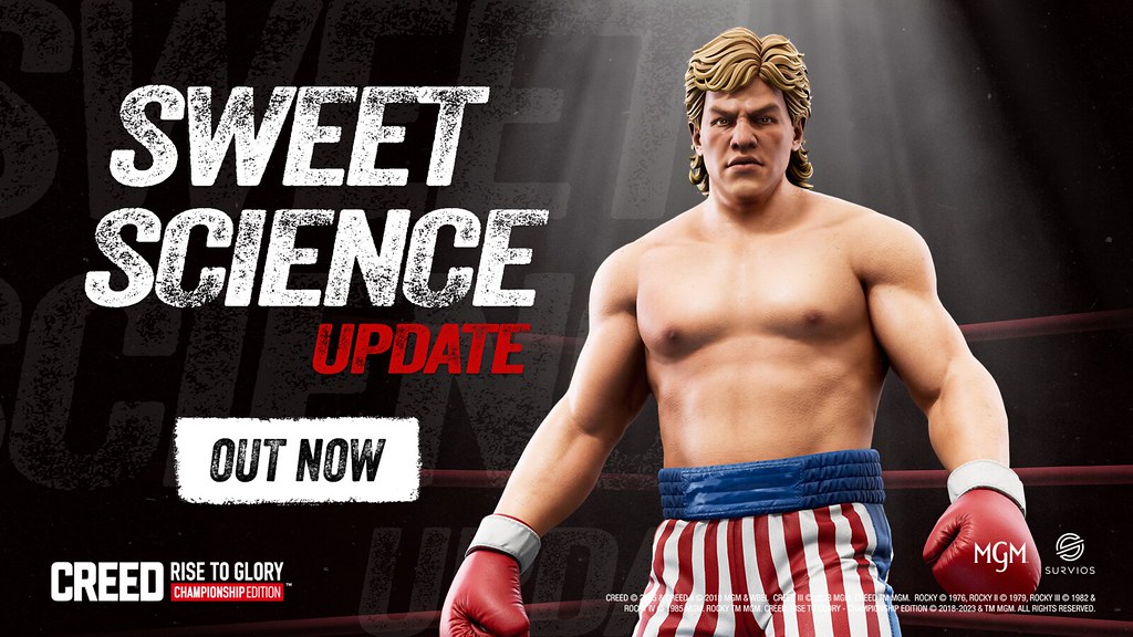 《克里德:榮耀崛起》錦標賽版已在PS VR2平台上推出的免費「甜蜜科學」更新。這項更新是繼今年早些時候《克里德III》在全國電影院首映之後,《克里德:榮耀崛起》錦標賽版帶來的一次重要迭代,它新增了一系列新拳擊手角色、以電影為靈感的肌肉海灘背景,以及擴展了2018年原版PS VR遊戲的內容。