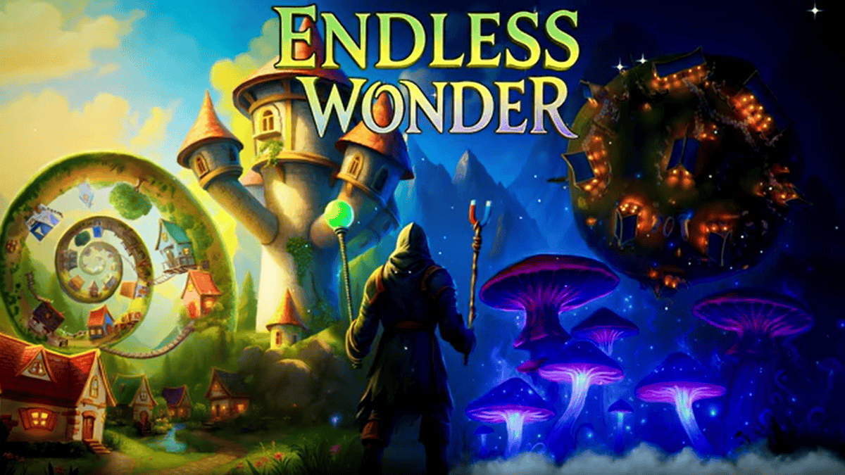 《Endless Wonder VR》設定於一個色彩鮮明且風格化的奇幻世界。玩家將在魔法、磁力與重力交織的環境中展開旅程,目標是追尋神秘的 Bone Dragon。遊戲核心機制圍繞不同能力的「sticks」組合運用,玩家可透過切換與搭配特殊能力,在關卡中克服障礙、跨越地形並持續前進。