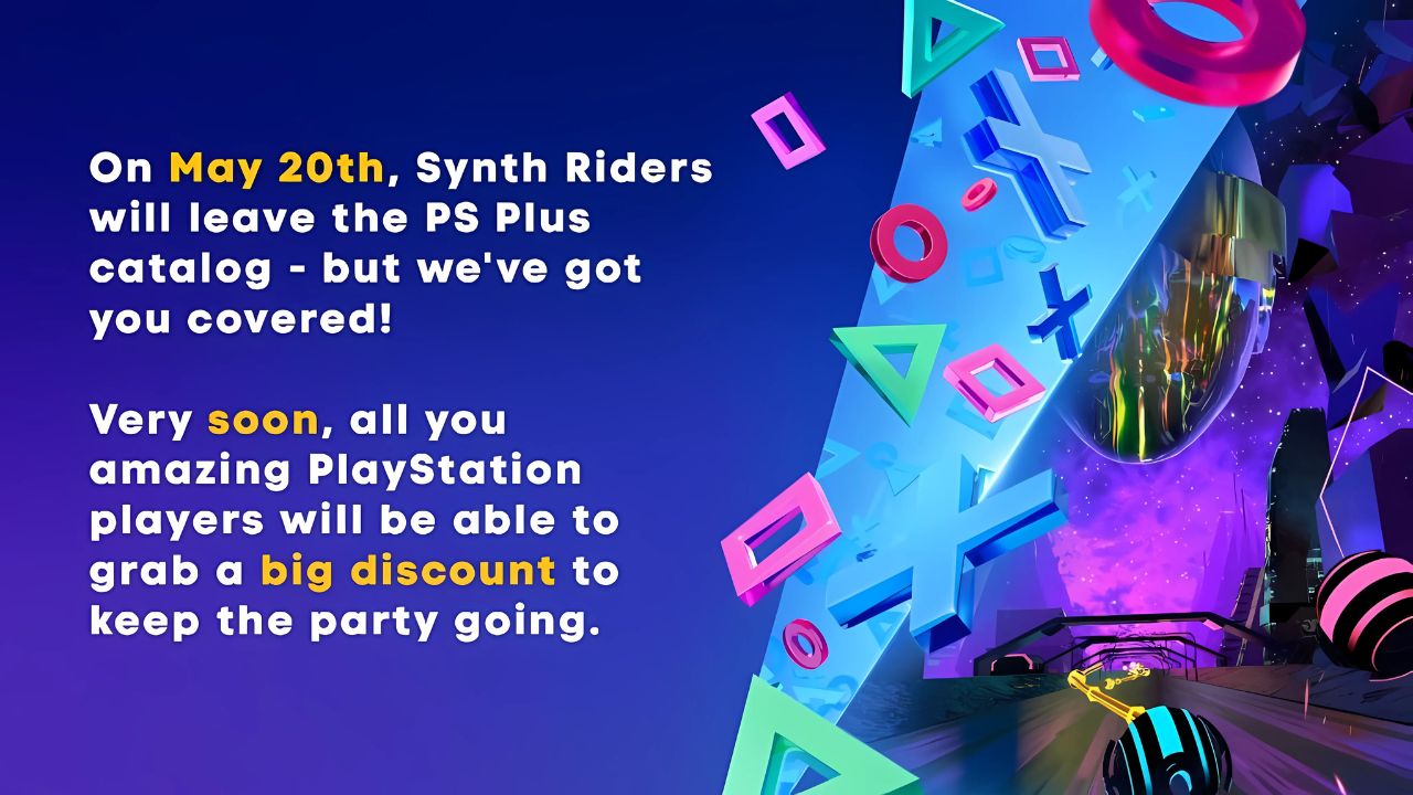 根據官方釋出的公告,節奏類 VR 遊戲《Synth Riders》將於 2024 年 5 月 20 日從 PlayStation Plus 遊戲目錄中下架。屆時,該遊戲將不再包含於 PS Plus 訂閱服務的免費遊玩清單內,對目前透過會員資格體驗本作的玩家而言,將產生影響。