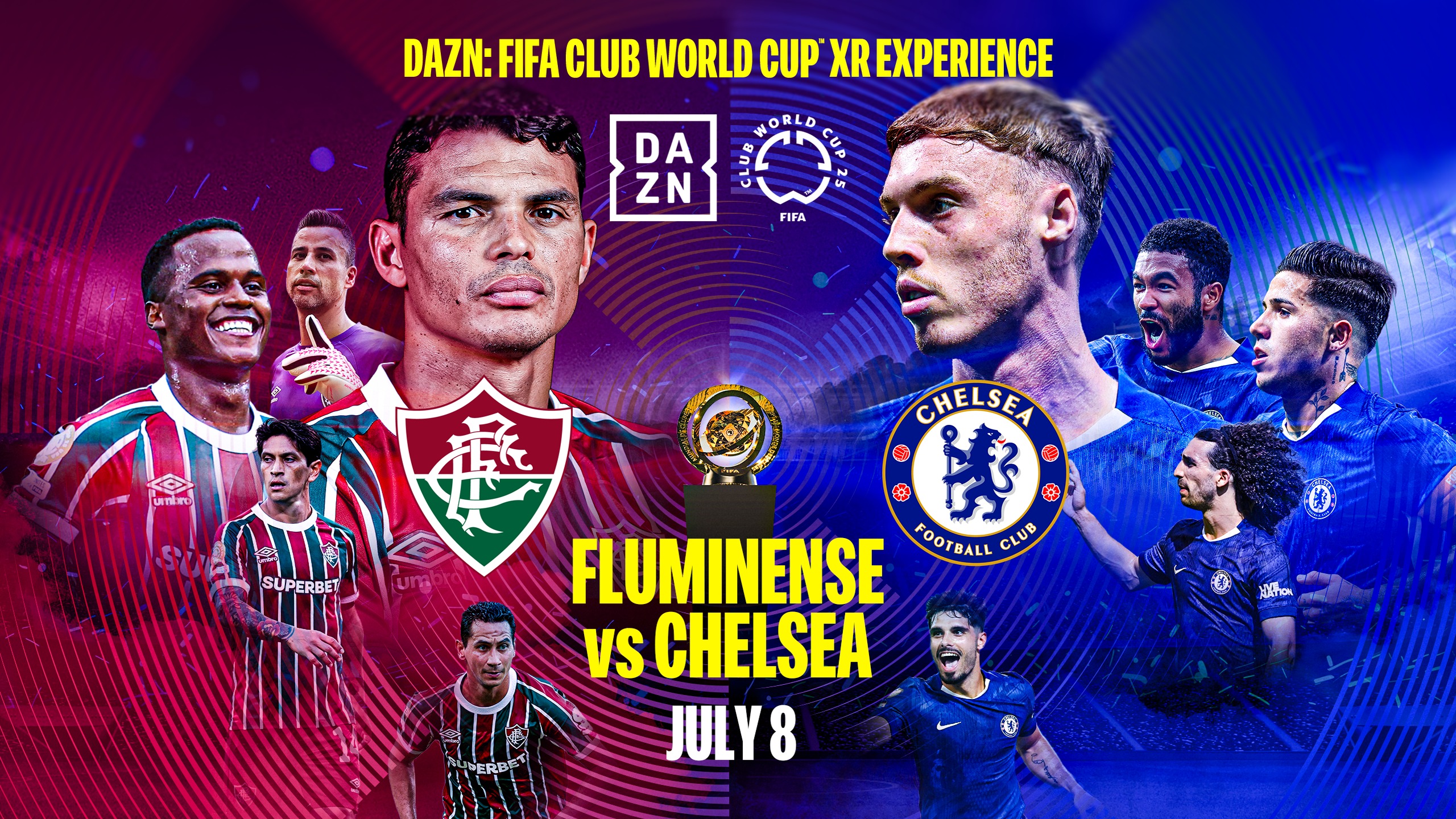 在即將進入最高潮階段之際,眾所矚目的準決賽將於美國西岸時間 7 月 8 日中午 12 點舉行,對戰組合為巴西勁旅 Fluminense 對上英超強權 Chelsea。這場關鍵賽事不僅支援多角度攝影與現場畫面切換,更特別加入 180° 即時視角與 360° 沉浸式內容,觀眾可依照喜好自由切換觀戰角度,甚至可將關鍵畫面暫停、回放,或進行慢動作重播分析。更值得一提的是,透過 XR 技術,使用者還可即時查看球員跑動軌跡與數據資訊,讓戰術理解與比賽感受更上層樓。