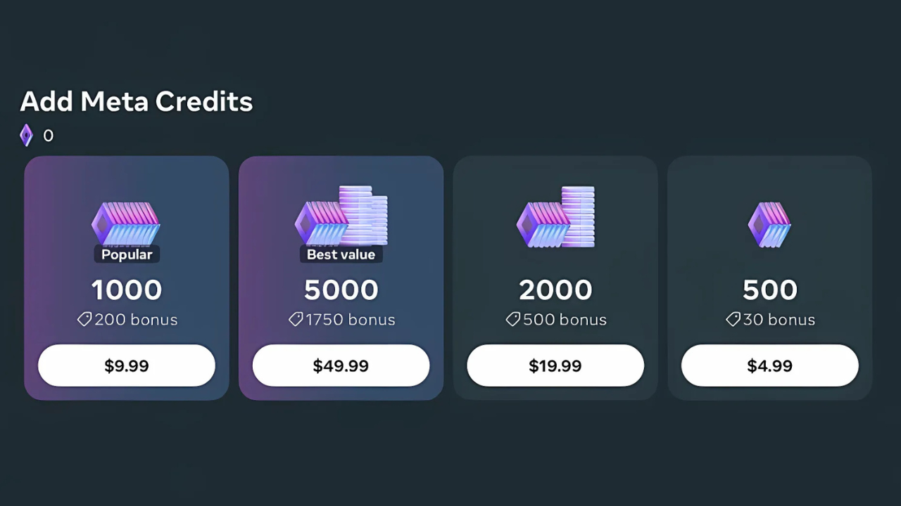 相比傳統的虛擬貨幣,例如 Roblox 平台上的 Robux 或 Rec Room 的 Tokens,Meta Credits 的應用場景有所不同。它僅限於 Horizon Worlds 內使用,且無法購買硬體或 Quest 平台上的配件。此外,Meta Credits 也不具備加密貨幣的特性,無法在不同帳戶之間轉移,而是綁定於個人帳戶。這樣的設計雖然降低了資金流動的風險,但也意味著此貨幣僅能在 Horizon Worlds 生態內流通,與其他擁有廣泛應用的虛擬貨幣有所不同。