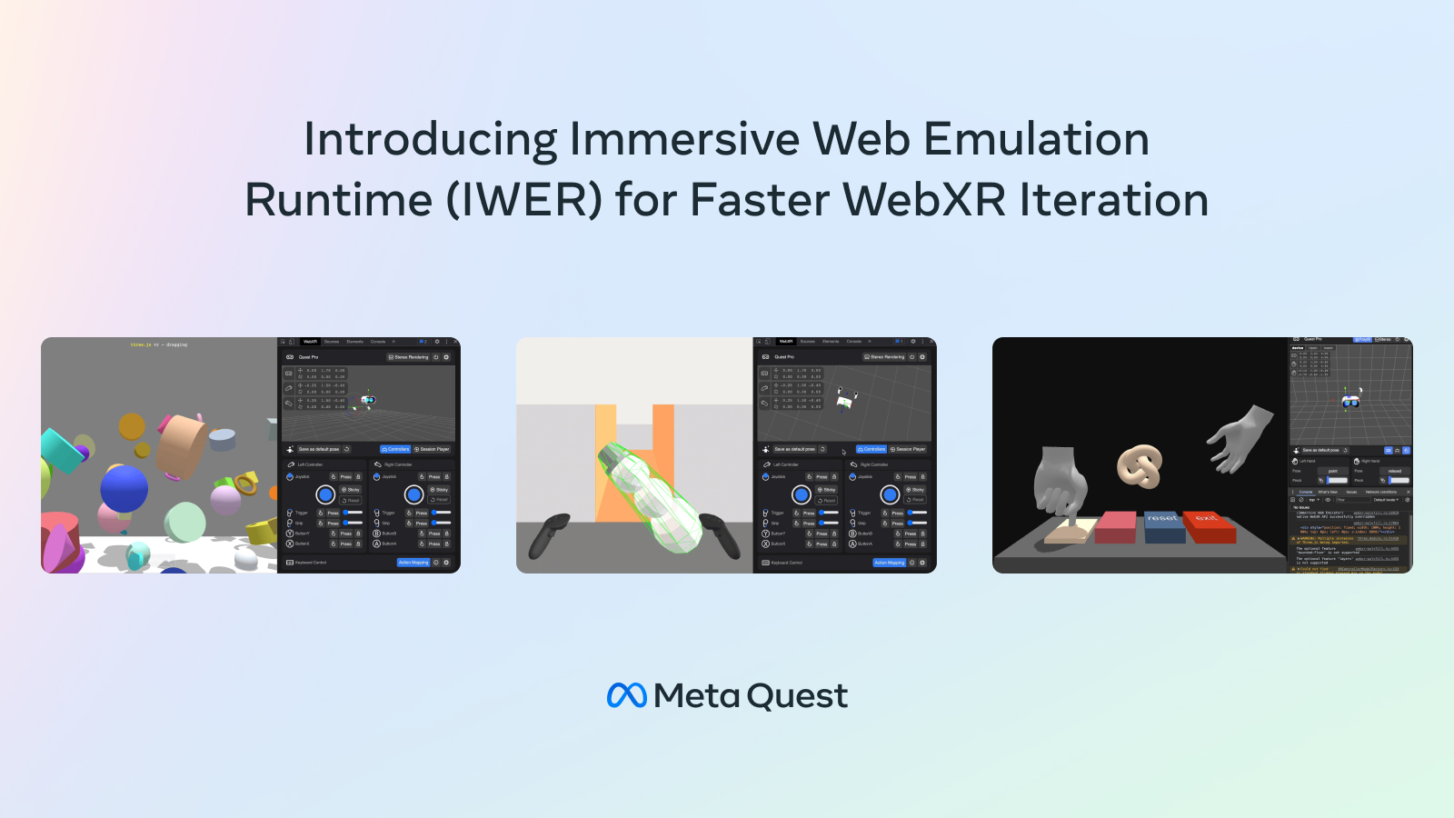 這一突破性功能不僅提升了測試效率,還確保 WebXR 應用程式能夠在不需連續手動測試的情況下,通過重複真實用戶互動進行嚴格測試。若您要開始使用 IWER,請存取文件。