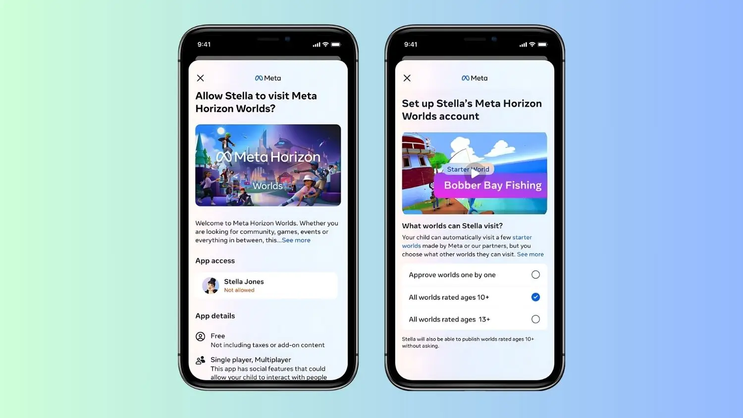 在這一新的系統中,Meta Horizon Worlds引入了一個專屬的評級系統,將虛擬世界劃分為10+、13+和18+三個年齡段。家長可以根據這一評級系統,批准其孩子進入適齡的虛擬世界,如太空站、水族館等,並且家長還可以選擇一鍵批量批准所有適合10歲以上的虛擬世界。為了保護青少年用戶,18+的虛擬世界將不對他們開放。