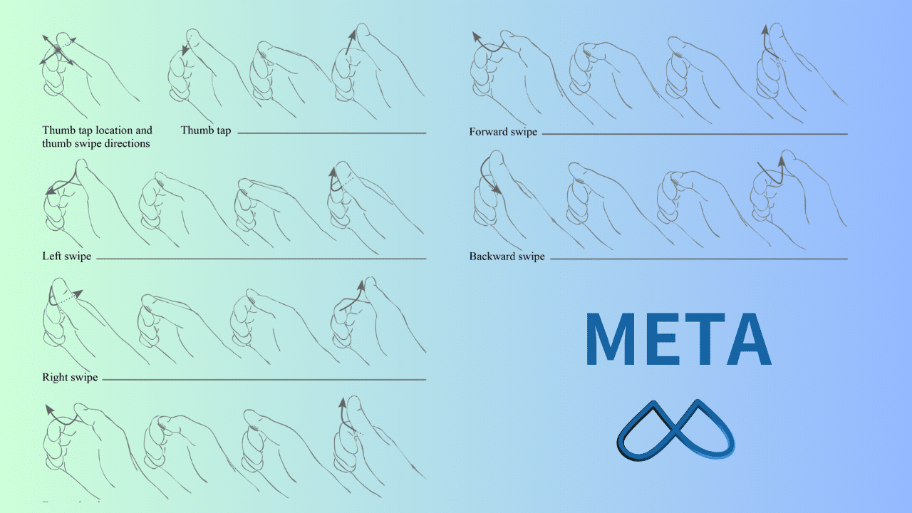 微手勢主要透過拇指與食指的互動來執行基本指令,食指側面相當於一個方向鍵,使用者可透過拇指滑動來進行左滑、右滑、前滑或後滑,並以點擊食指側面來確認輸入。這項設計旨在提供一種低負擔、直覺性的輸入方式,適合用於重複性的操作,例如瀏覽器滾動、應用程式導航或在虛擬環境中進行瞬移(teleportation)。